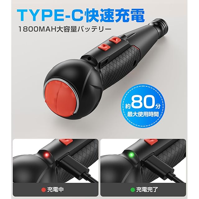 【USB Type-C充電式・1800mAh大容量バッテリー】USB充電式電動ドライバーはバッテリー交換不要で、繰り返し充電できます。1800mAhの大容量バッテリーは50分間連続使用でき、作業効率が向上します。ご注意:ドライバーの充電には 5v 1a アダプターを使用してください。