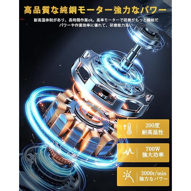 【パワフルで二十段階の変速】Jmomo ポリッシャーは 純銅モーターを採用し、強力で安定したパワーを提供します。さらに、二十段階の変速機能を備えており、具体的な表面材料や作業用途に応じて適切な速度を選択できます。低速時は低騒音で、高速時は効率的です。これは車両、木材製品、金属など、様々なポリッシュやワックス作業、金属製品のペイント除去や錆除去など、様々な要求に対応できます。