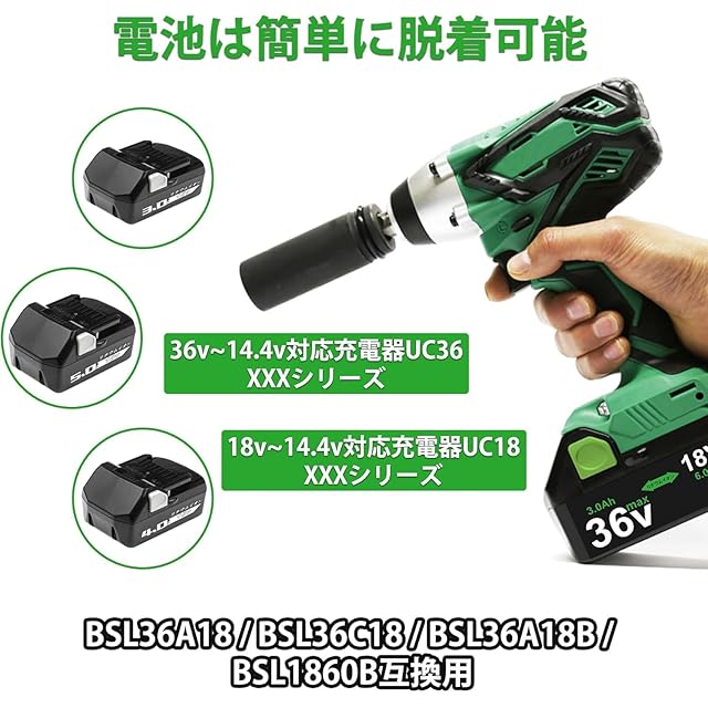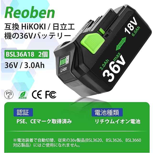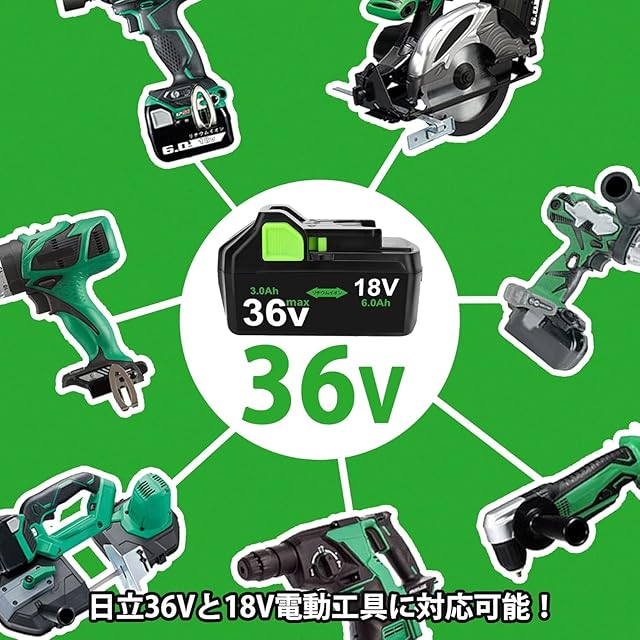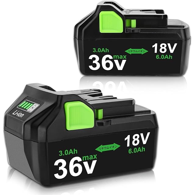 Reoben互換 BSL36A18 ハイコーキ 36V 互換バッテリー 2個 36v/18v 3000mAh/6000mAhに自動切替 互換 日立 リチウムイオン インパクト 電動工具用 バッテリー BSL36A18/BSL36B18/BSL36C18/BSL36A18B 従来の 18V 製品互換可能 グリーン | つむぎ屋