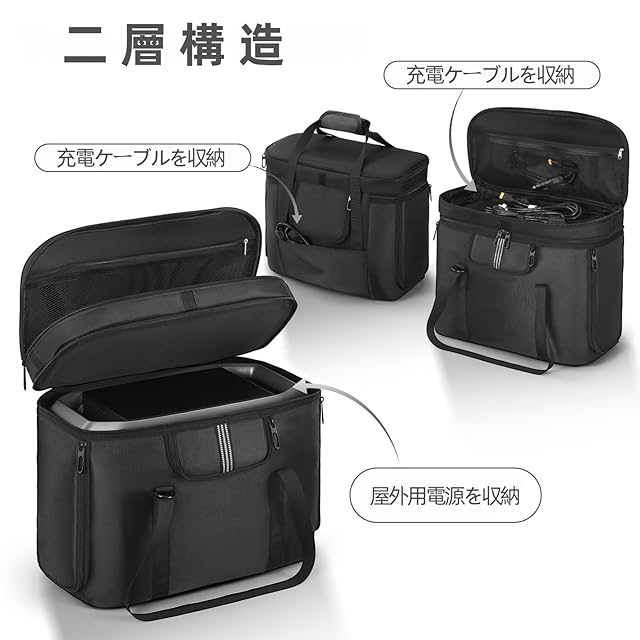 ポータブル電源 収納バッグ EF ECOFLOW DELTA 2/DELTA 3 Plusに適合して ポータブル電源 保護ケース 防塵 撥水 耐衝撃 収納ケース キャンプ 外出や旅行用 (ブラック, EF DELTA 2 / DELTA 3 Plus に対応) | つむぎ屋