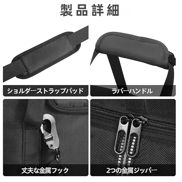 [多様な携帯方法] ショルダーストラップ(パッド付き) + ラバーハンドル + 金属フックで、キャンプ・車載・緊急時に便利。