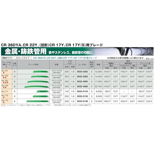 切断可能材料:鉄やステンレス、鋳鉄管など