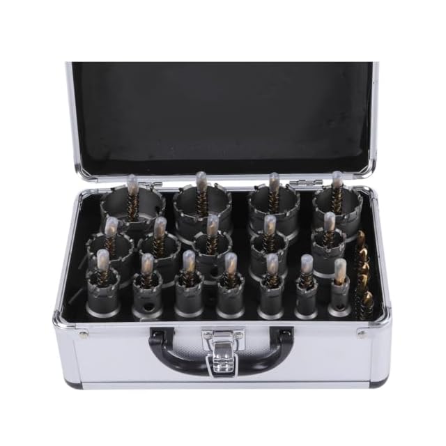 【現役電気工事士・大工推薦&監修】超硬 ホールソーセット ステンレス 木工 鉄鋼用 対応 電工 16本セット 14mm 16mm 18mm 20mm 21mm 22mm 24mm 26mm 28mm 30mm 32mm 35mm 38mm 40mm 45mm 50mm 保管用アタッシュケース付き (16本セットA:14~50mm)
