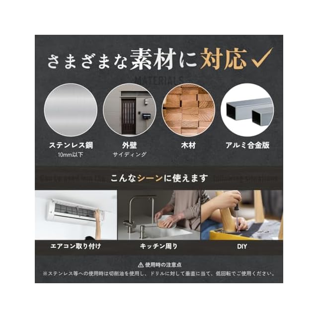 【被削材】ステンレス板 (10mm以下)、鋼板、鉄板、鉄鋼、アルミ 合金板、木材、 パネル ボード、など