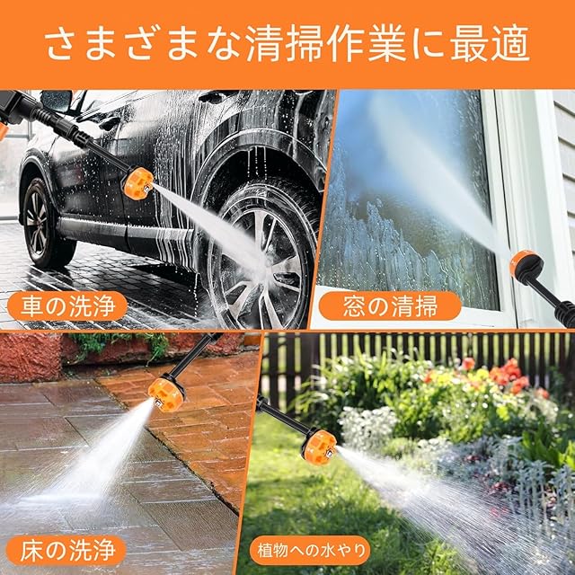 幅広い用途:この高圧洗浄ガンは、家庭や庭のさまざまな清掃作業に最適です。豊富なアクセサリーと強力な水圧で、車やパティオ、壁の清掃などを簡単にこなせます。優れたショッピング体験を提供できることを願っております。万が一、手持ち式高圧洗浄機に問題がございましたら、お気軽にお問い合わせください。24時間以内に対応いたします。