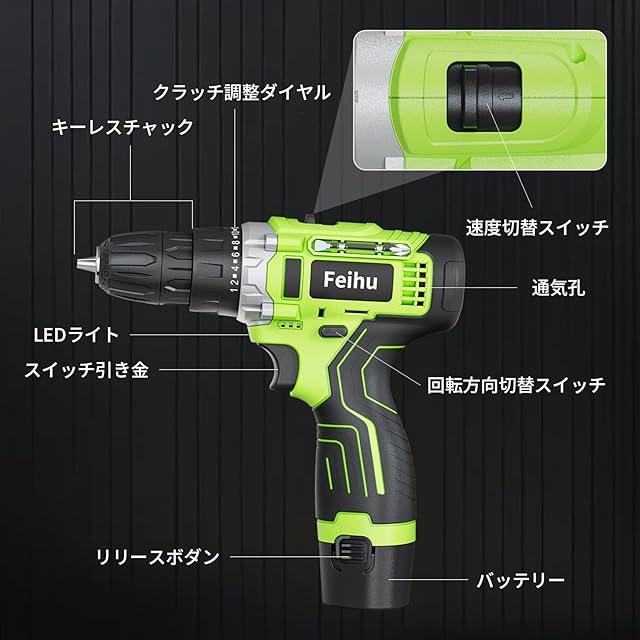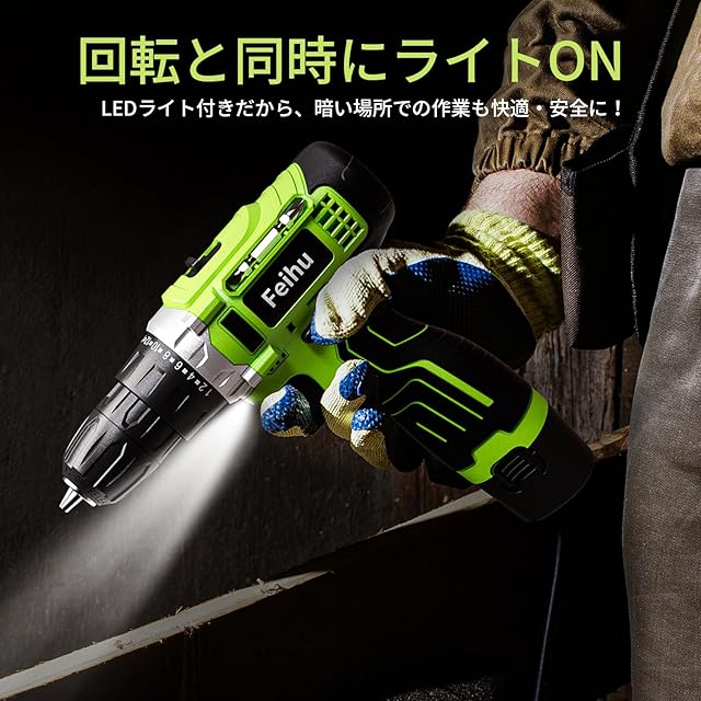【25Nm高トルク・12V強力モーター】 最大25Nmのトルクを実現。コンクリート、金属、木材などさまざまな素材に穴あけ可能。一般的な3Nmの小型ドライバーとは違い、本格的なDIY作業にも対応します。