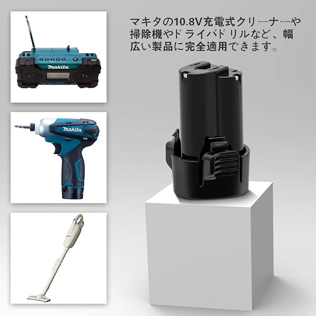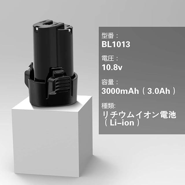 型番:マキタ10.8vバッテリー 電圧:10.8v 容量:3000mAh(3.0Ah) 種類: リチウムイオン電池(Li-ion)【バッテリー取り付け方】バッテリーを本機の溝に合わせ、「カチッ」という音鳴り、奥まで挿 入してください。最後までロックされないと、正常に充電できないです。