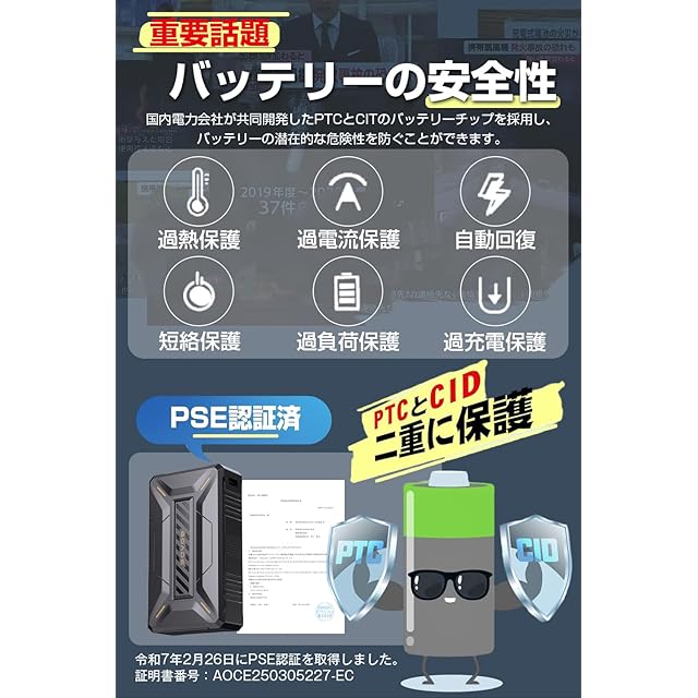 【安心のPSEマーク·40500mAh大容量バッテリー】バッテリーはPSEの認可を得ており、PTCとCITの2重チップを内蔵しており、過熱保護、過電流保護、過負荷保護、短絡保護、過充電保護、自動回復などの特徴があり、他社のように火災のリスクはありません。昨年とは異なり、バッテリーのチップは国内の電力会社が共同開発した最新の成果を採用し、バッテリーの重量が変わらない状況で、バッテリー容量は40500mAhに大幅に向上した。実験室の6カ月間の限界負荷試験によれば、耐久性は信頼できる。「自動モード」の使用時間は約9時間、「42V」風力は約5時間、「38V」風力は約6時間、「34V」風力は約7.5時間、「30V」風力は約10時間、「26V」風力は約13時間、「22V」風力は約21.5時間、「20V」風力は約25時間で、従来の使用時間に比べて大幅にアップしました!専用のアダプターは約5時間で、バッテリーを100%にすることができます。※以上のデータは室温25℃の環境下で試験され、バッテリーの使用時間や充電時間にも環境によって誤差があります。