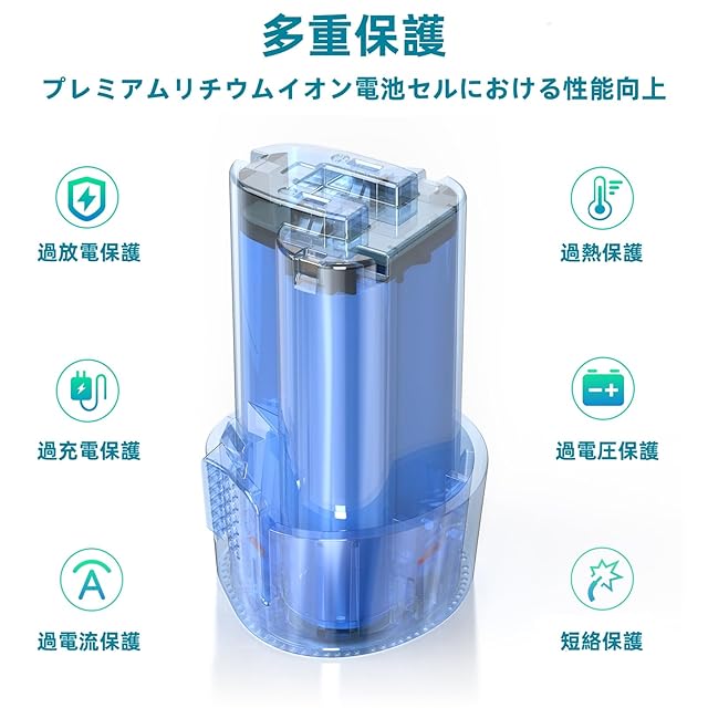【保護回路・安全性up】内部に先進的なマイクロプロセッサを採用、過電流保護、過充電防止、過放電防止等の保護回路が内蔵されていますのでご安心使用頂けます。さまざまなモデルやデバイスとの互換性、さまざまなデバイスとの良好な互換性、適合性、および代替としてシームレスに動作します