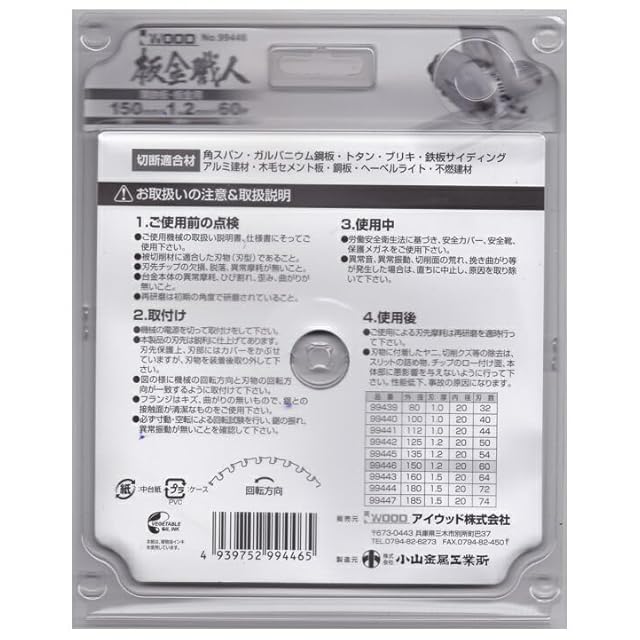 商品名:アイウッド 板金職人 板金用チップソー 150mm×1.2×60P ※取寄品 99446