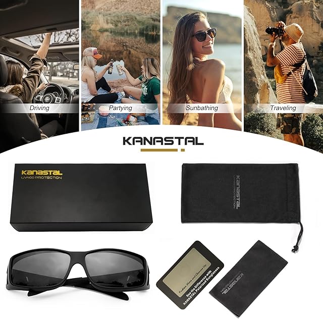 UV400偏光レンズ:KANASTALスポーツサングラスは、高品質なTAC偏光レンズを採用。紫外線を99%以上カットするUV400プロテクションを備え、眩しい日光や照り返しから目を保護します。偏光効果によりギラつきを軽減し、クリアな視界を確保