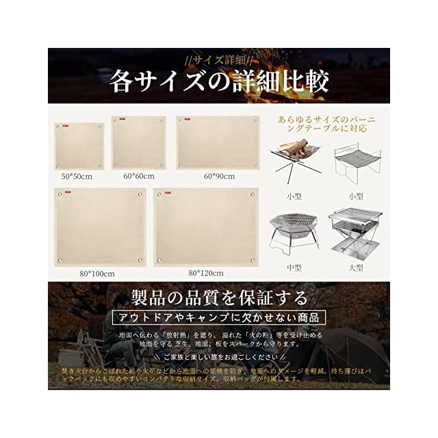【より多くの選択】不燃布マット板縫い目がしっかりしている,大きい、小さい全部あります。焚火シート、炊き火シート、焚き木シートなど下敷きいずれも使えます。しかも折り畳みと携帯に便利です。