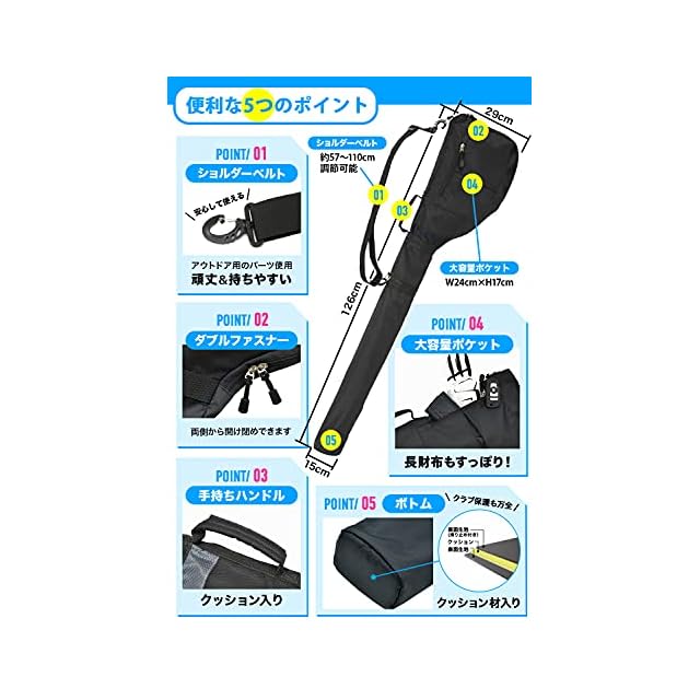 ✅【 機能重視のALL IN ONE 】ヘッド部分にファスナーポケット付き。小銭入れやグローブ、携帯電話、キーケース、フェイスタオルを クラブと一緒に持ち運び可能です。このソフトクラブケース1つで身軽に練習に行けます。持ち手部分はクッション付きで持ちやすく、 2way仕様でショルダーベルトを使えば、自転車や電車などで移動することもできます。ケース底の部分に厚さ約1cmのクッションが 入っており、大切なクラブを傷や衝撃から守ります。 . .
