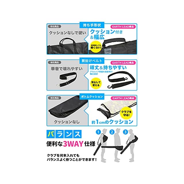 ✅【 267gの軽量設計・最大7本の大容量 】他社の640gのクラブケースに対して、EARTH LEADのクラブケースはわずか267g。耐久性はそのままで 重量を60%削減しました。クラブケース自体が軽量なので6本収納しても軽量で持ち運びも楽々!ドライバーとアイアン、ウッドなど 練習したいクラブだけを持って打ちっぱなしやレッスンなどの練習に行けます。重たいキャディーバッグを自宅や練習場から駐車場まで持ち運ぶ必要が無いので、 休日の練習場に気乗りしなかった方や女性の方も気軽に練習に行けます。 . .