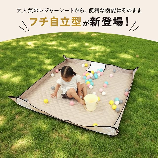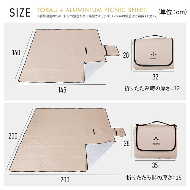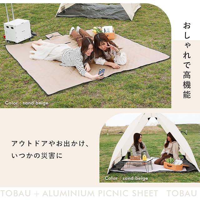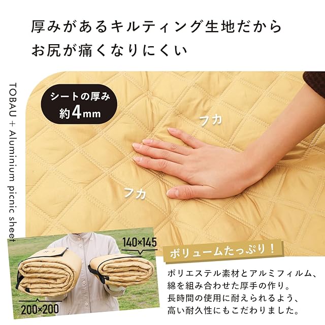 [TOBAU] レジャーシート 厚手 フチ自立 140×145 大判 アルミ 防水 キルティング アウトドア インナーシート テントマット 無地 保温 (01.サンドベージュ:145×140cm(フチ自立型))
