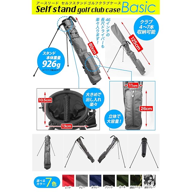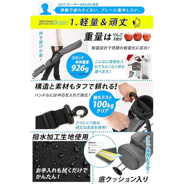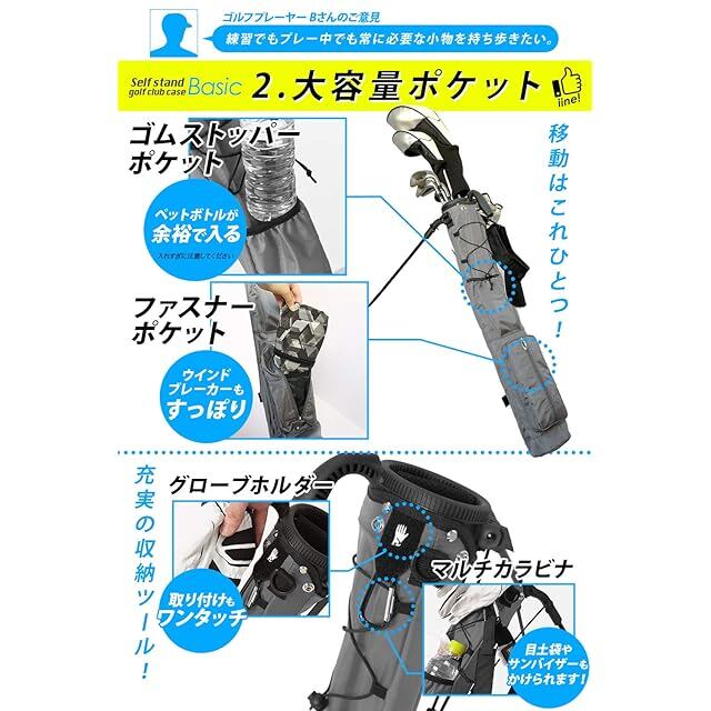 【公式】 EARTH LEAD セルフスタンド ゴルフ クラブケース 【超軽量 9色 大容量収納】 クラブ ケース フード&大型ポケット付き 超軽量 低重心 安定感 BASIC (01.ブラック) | つむぎ屋