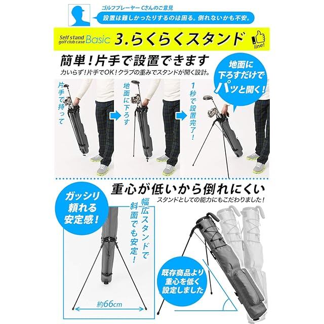 ✅【 耐久性抜群・安全で頑丈 】ボトム部分は両面クッション設計で大切なクラブを保護。スタンド幅を一般的なクラブケースより20cmアップすることで、急斜面でも安定感抜群。未使用時にスタンドの脚が不意に飛び出して事故になるのを防止するための収納用ベルト付き。