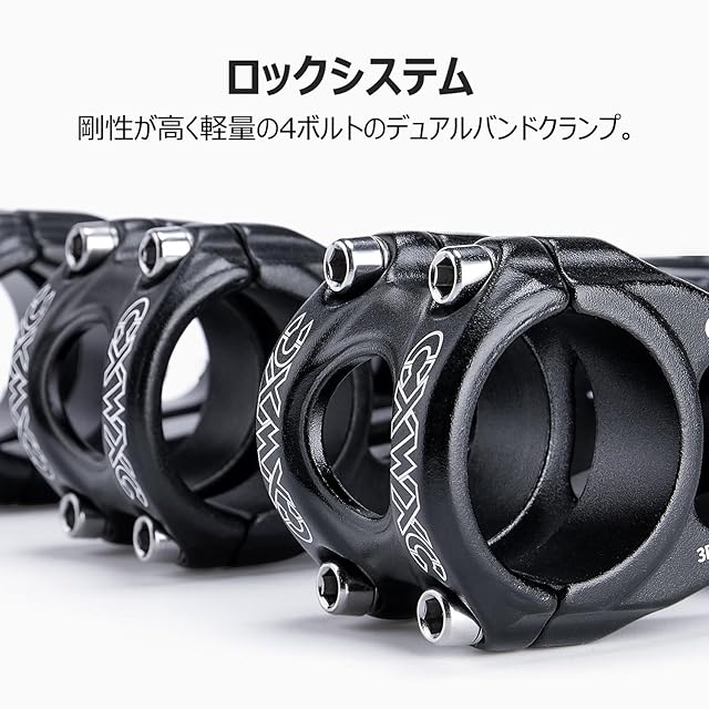 4ボルトのデュアルバンドクランプが、ハンドルバーをしっかりと固定。
