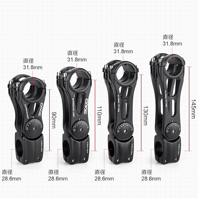 CXWXC ステム 140度角度調整 クランプ径/ 31.8mm ハンドルステム 自転車 アジャスタブルステム 90/110/130/145mm シティサイクル/MTB/ロードバイク/クロスバイクなど対応 アヘッド (XT-AS822-90) | つむぎ屋
