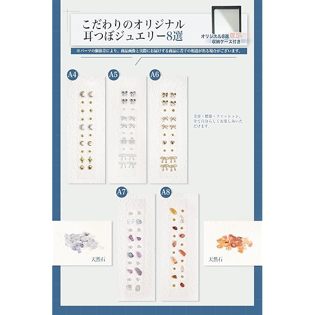 耳つぼジュエリー シール 【2025新登場・オリジナル8選&シンプル5色展開】 耳つぼシール チタン マグレイン 耳つぼ 耳ツボジュエリーシール 耳つぼジュエリー チタン スターターキット かわいい 可愛い パーツ 耳 ツボ ジュエリー セルフ [日本語説明書&耳つぼ位置図付き] (20粒, A1パーツ, ツボ押し棒&ピンセット付き)