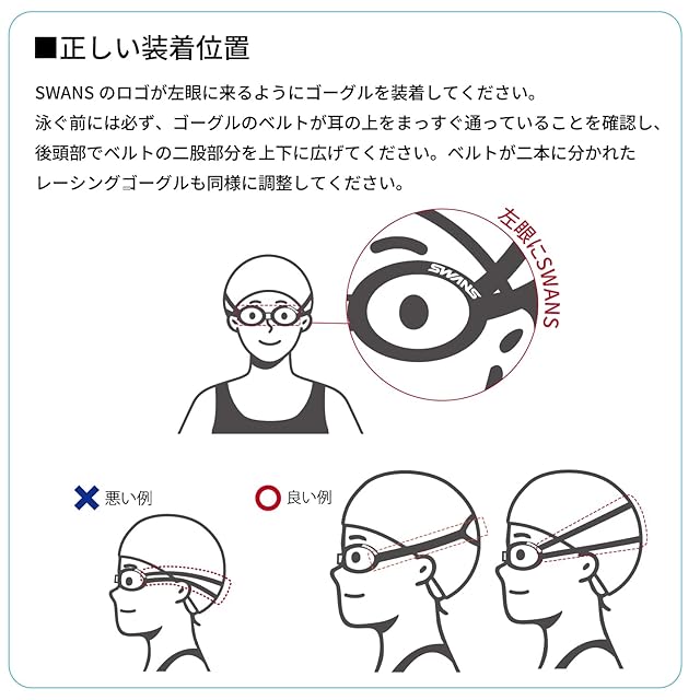 素材:アイカップ・ベルトアジャスター/ポリカーボネート、・鼻ベルト/エラストマー、・ベルト/エチレンプロピレンゴム (EPR)