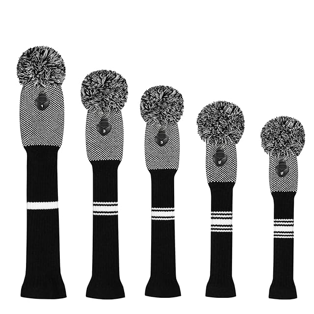 ゴルフクラブカバーは、ドライバーウッド(460 cc)1フェアウェイWood 2とハイブリッド(UT)2のためにぴったりの5つの二重層糸編みスタイル・スタイルのセットをカバーしました (Black and White Dot) | つむぎ屋