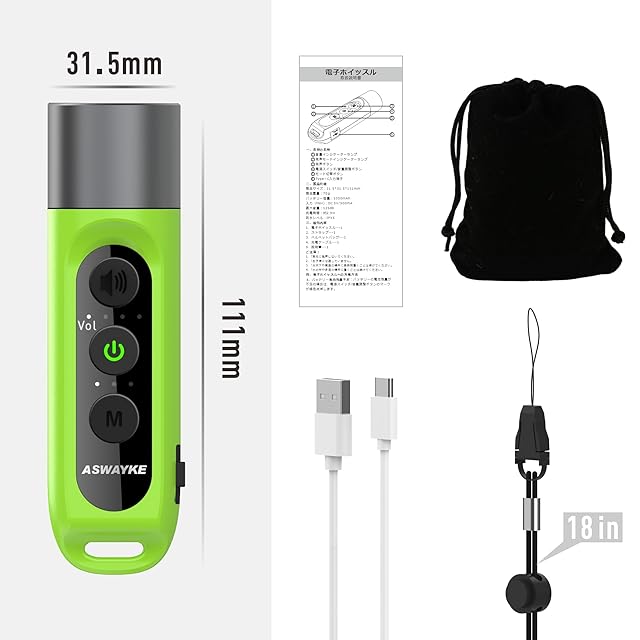 「パッケージ内容」--電子ホイッスル×1個、収納ポーチ×1個、日本語説明書×1冊、ストラップ×1本、弊社の商品は全部老化して、日本に再度検査を行いますので、ご使用中に何か質問がありましたら、御遠慮なく連絡してください。もしご購入日から120日間に何か故障が発生した場合、返金や交換のサービスを提供致します。