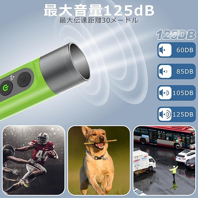 「高品質で大音量」:3種類ホイッスル音4級音量--モード切替ボタンを押して、3つ異なる種類のホイッスル音を選択できます。最新技術で開発され、16K高デコードチップと厚みのあるアルミニウム合金発音管を搭載され、最大音量125dbで、音響効果はさらに優れています。4級音量の使用は便利で、様々な場所に対応します。