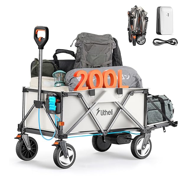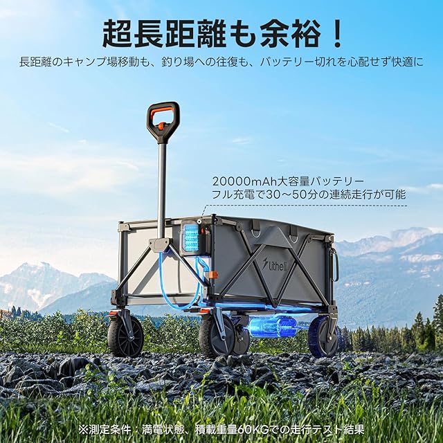 Litheli 電動キャリーワゴン 坂道運搬 大容量200L 耐荷重60kg ブレーキ付き 自走式 折りたたみ式 無段変速 アウトドアワゴン 子供載せ/キャンプ/道具運搬 U20バッテリー×1 W1 pro