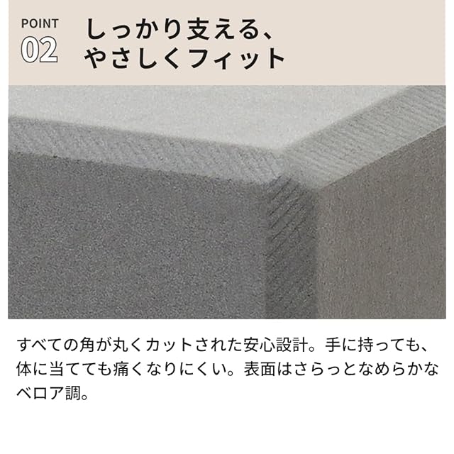 角は丸みのある設計で手や身体に優しくフィット。表面はベロア調で快適な肌触り。
