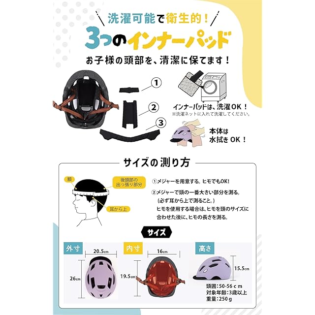 【親子でお揃いにも!】Co-Goodsでは大人用の自転車 ヘルメットもございます。お揃いにすると親子で自転車に乗るのがもっと楽しく! 【お手入れが簡単なヘルメットです】ヘルメット内部のインナーパッドは洗濯が可能で、本体も水拭きOK。お手入れが簡単になりました。