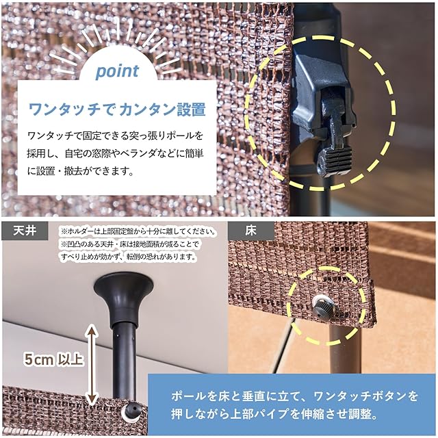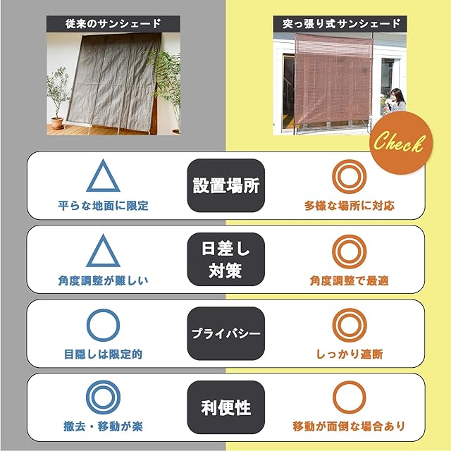 サンシェードの設置高さは220-315cmの間で自在に調整可能