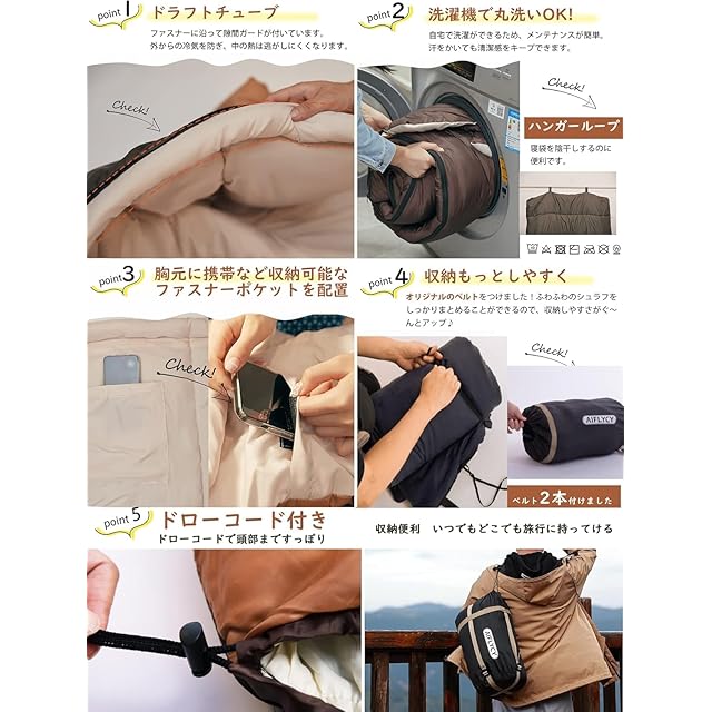 【簡単お手入れ&丸洗いOK】ご家庭で洗濯機で丸洗いができるのでいつでも清潔にできます。ご使用の前に、日光に当たっておけば、水分が蒸発され、寝袋がもっと暖かくなります。丸洗い可能なので衛生的です、防災グッズにもオススメです。