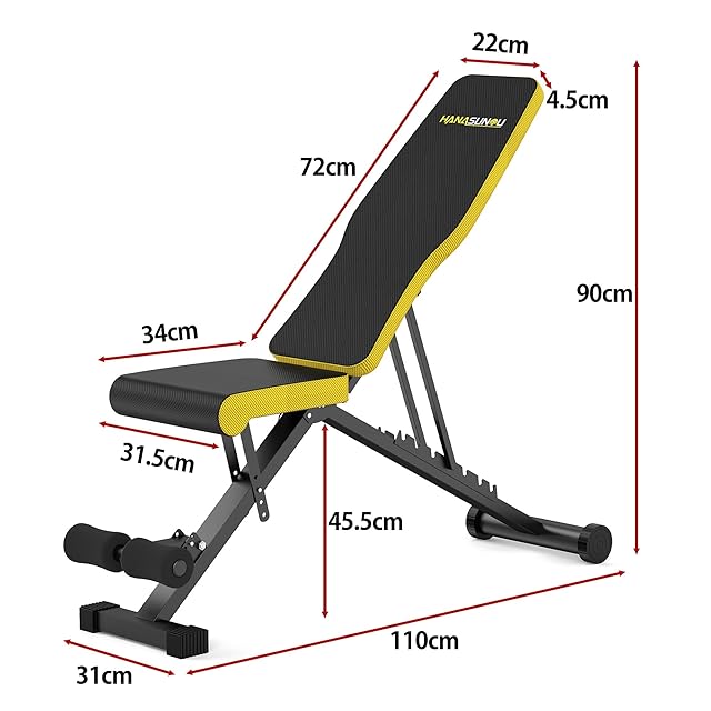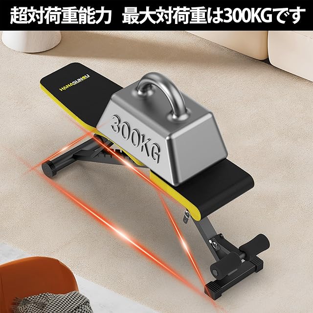 【日本企業】トレーニングベンチ インクラインベンチ ダンベル ベンチ 角度調節 組立超簡単 折り畳み式 収納便利 フラットベンチ マルチシットアップベンチ 腹筋 背筋 シットアップ 耐荷重300KG 筋トレ 家庭用 日本語説明書【メーカー:2年間】 (イエロー) | つむぎ屋
