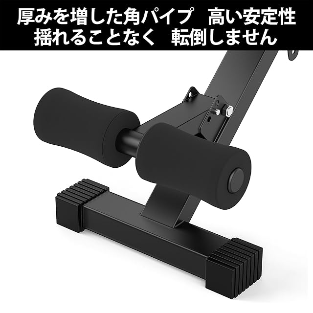 【安定性抜群】滑り止め脚キャップ付きで横揺れを完全に防止します。脚の下にゴム製クッションが付いており、床を傷つけません。頑丈なスチールチューブ製で、ユニークな三角支持構造が運動中の多機能フラットベンチの安定性を保障します。さらに高密度フォームパッドで、家で快適かつ簡単に運動ができます。
