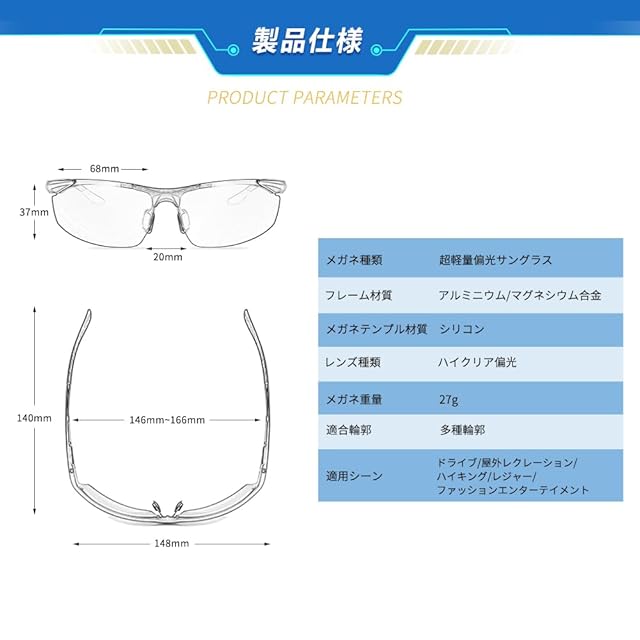 ✅➤【高品質の偏光レンズ】路面、雪や海などの反射光を抑え、眩しさを軽減しつつ、もとの色を忠実に再現。乱反射光をカットし、快適な視界を提供します。 透明非鏡面レンズは乱反射をカットし、心地良い光を取り込むことにより、目への負担を軽減してくれます。