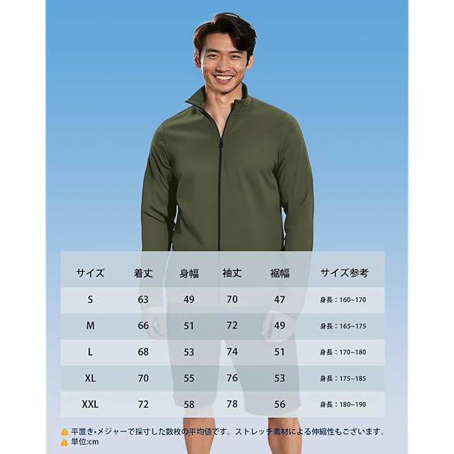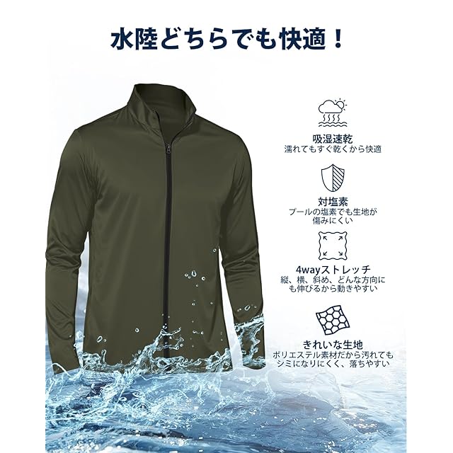 【フルジップ&スタンドカラー】着脱しやすいフルジップ仕様で、濡れた後でもストレスなく脱ぎ着可能。首元はスタンドカラーで、うっかり焼けしやすい首周りもUVから守ります。シンプルな無地デザインで、メンズ 大きいサイズも展開中。
