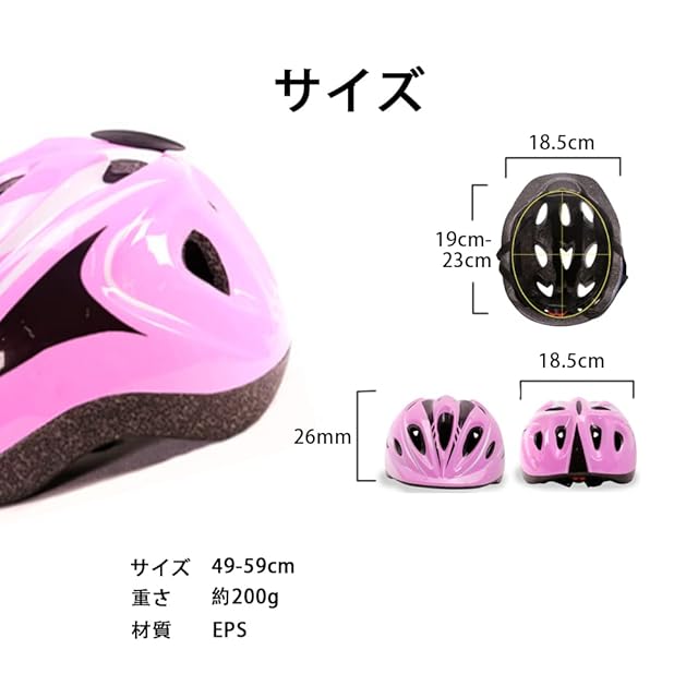 【ヘルメット仕様】サイズ調整可能:約10m;適用頭囲:49-59cm。軽量で小さい子どもの負担が少ないソフトシェル。このヘルメットは軽量設計で、長時間着用しても疲れません。CE認証を取得しているので、安心してお使いいただけます。さらに1年間のがついており、万一品質に問題がございましたら、お気軽にご連絡ください。