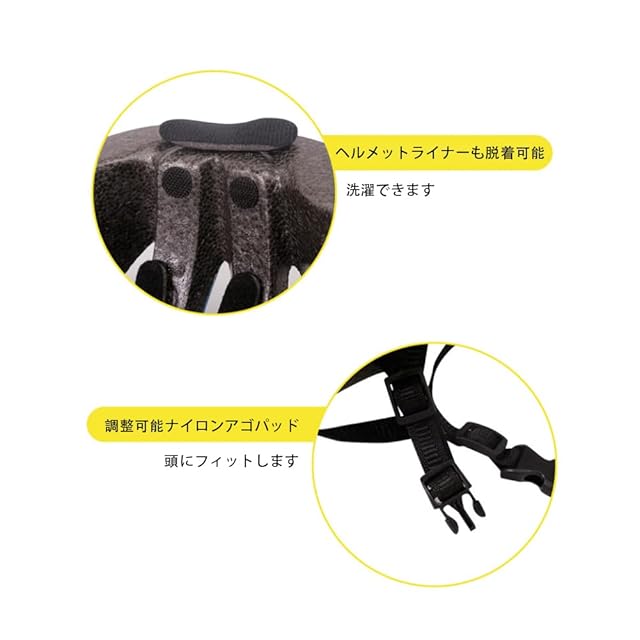 【優れた通気性】空気抵抗を減らすために空気力学に基づいて設計されたヘルメットで、11個の大きな通気孔が十分な換気を保ち、様々な角度から風を通してムレにくく、ヘルメット内の熱気を効率良く排出でき、蒸れません。内側には取り外し可能なパッドがあり、簡単に掃除して新鮮な香りのヘルメットを保つことができます。