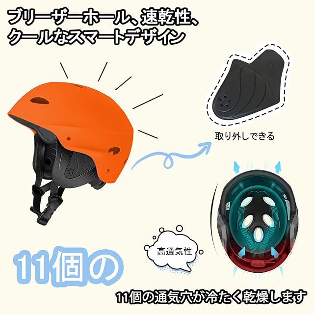 高通気性:11個の通気孔の設計により、空気が通りやすくなり、換気と冷却の効果が同時に実現できます。それによ り、汗などが流しやすくなり、頭の涼しさを確保できます