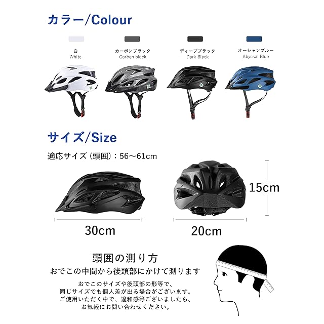 大人用 自転車ヘルメットの利用シーン: 大きいサイズの頭囲:58cm~61cmまで使用可能・ローラーブレード ・バランスバイク