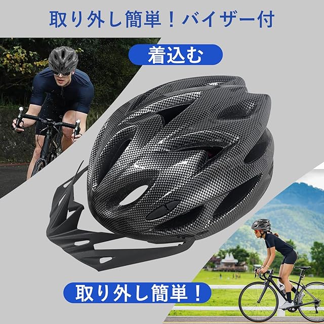 【SG認証】Genki 自転車 ヘルメット SGマーク付き自転車用ヘルメット 大人 子供 兼用 耐衝撃 軽量 サイズ調整可能 SG規格 ロードバイク サンバイザー付き 男性 女性 サイクリング (カーボンブラック, L (58-61cm)) | つむぎ屋