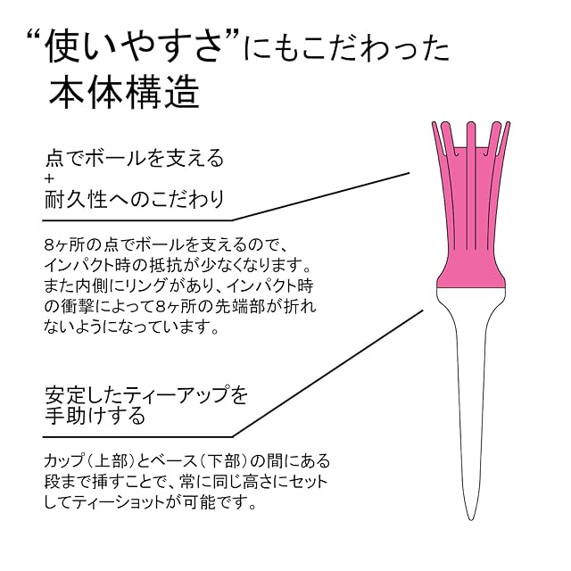 ショット後もティーが抜けにくく、紛失しにくい!