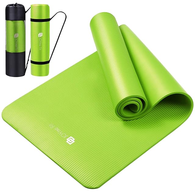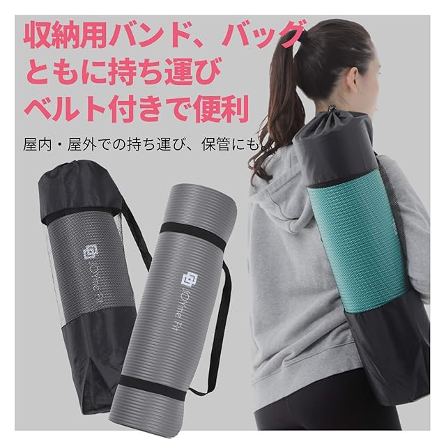JOYme ヨガマット (グリーン/厚さ 10mm / 収納袋付き/高密度ニトリルゴム) ヨガ トレーニングマット ストレッチマット 筋トレマット エクササイズ マット (防音/幅広/水洗い) ヨガ用 室内 運動用 洗える 滑らない | つむぎ屋