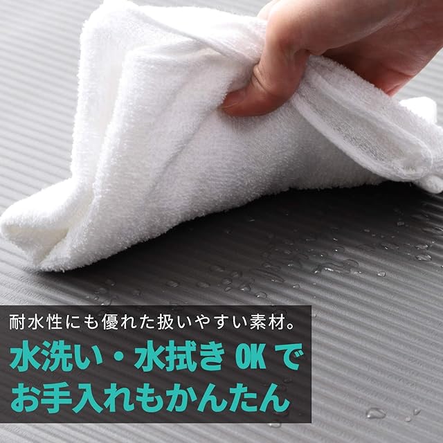 【水洗い水拭きでお手入れ簡単】汗や汚れがつきやすく、カビやすいヨガマット。水洗い・水拭きができるので、いつも清潔に使用できて、ホットヨガでの湿度の高さ、こまめな汗の拭きとり、前後の感染対策の消毒も行えます。耐水性に優れているのでお手入れが楽です。