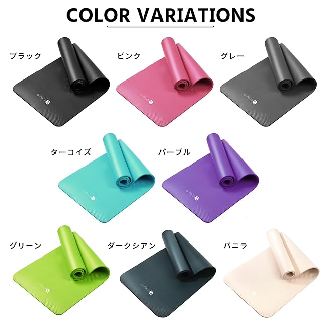 【商品詳細】カラー: バニラ / サイズ:縦183×横61×厚さ1.0cm / 重さ:800g / 素材:高密度ニトリルゴム / 用途:ヨガ、ホットヨガ、ピラティス、ストレッチ、筋トレ、腹筋ローラー、エクササイズ、トレーニング、体操、レジャーマット、アウトドアマットなど