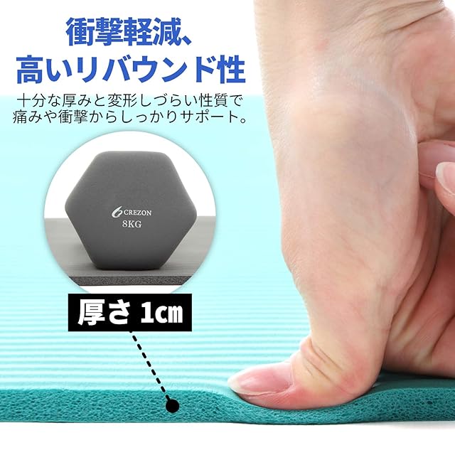【衝撃軽減&高いリバウンド性】10mmの十分な厚みと変形しづらい性質により、痛みや衝撃からしっかりサポート。腹筋ローラー等など体重をかけるトレーニングで、フローリングへの負担が気になる場合にもおすすめです。保温性にも優れているので、キャンプや車中泊などのマットとしてもお使い頂けます。
