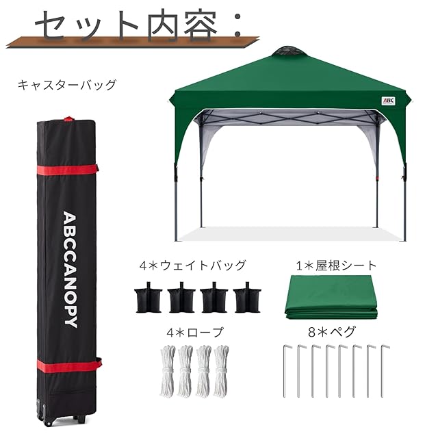 ABCCANOPY タープテント ワンタッチ 3段階調節 ベンチレーション 天井 2m/2.5m/3m アウトドア 簡単 大型 タープ テント キャスターバッグ付き 高耐水圧 遮熱日除け 付属品付き | つむぎ屋
