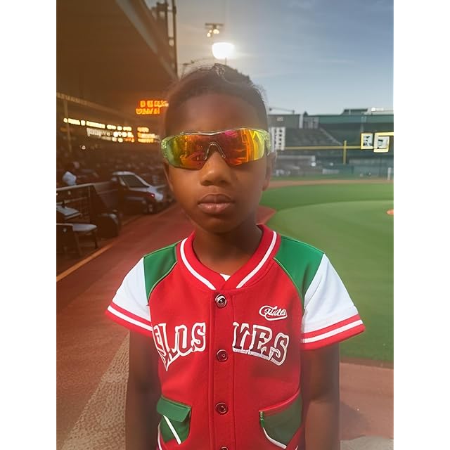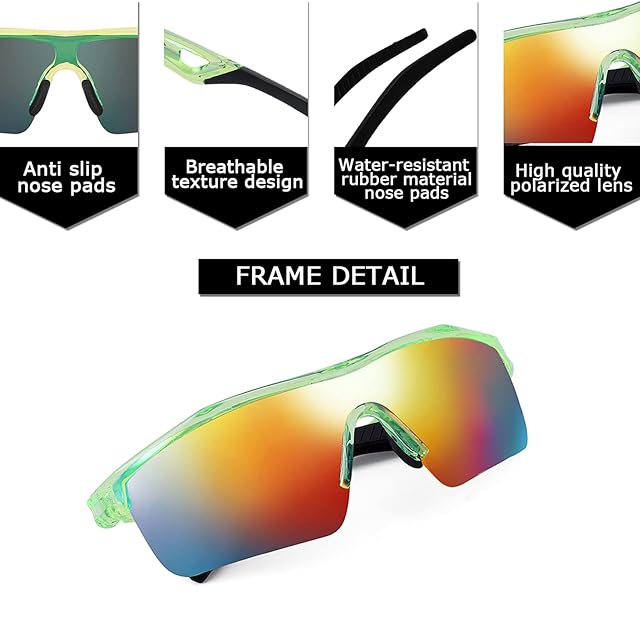 Feisedy キッズ スポーツ サングラス 子供用 偏光 レンズ UVカット TR90超軽量 サングラス ゴルフ ジョギング 野球 バス 釣り 自転車 サイクリング 紫外線カット B2454 (グリーン·レッド) | つむぎ屋
