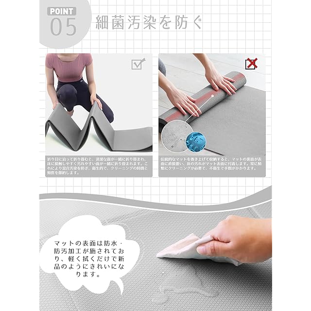 【細菌汚染を防ぐ】細菌汚染を防ぎ、従来の丸めたヨガマットよりも頻繁に掃除する手間が省けます。